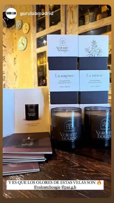 Cada pieza está hecha a mano en España, con cera vegetal sin tóxicos, perfumes de autor y palabras que acompañan.